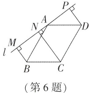 6. 如图所示,直线 $l$ 绕平行四边形 $ABCD$ 顶点 $A$ 转动,分别过点 $B$,$C$,$D$ 作 $l$ 的垂线段,垂足分别为 $M$,$N$,$P$。已知 $\angle ABC = 60^{\circ}$,$AB = 6$,$BC = 5$,则 $BM + CN + DP$ 的最大值为