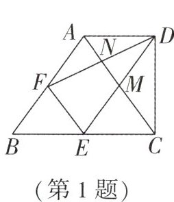 1. 如图,在梯形 $ABCD$ 中,$AD // BC$,$\angle BCD = 90^{\circ}$,$BC = 2AD$,$F$,$E$ 分别是 $BA$,$BC$ 的中点,则下列结论中:① $DE$ 平分 $\angle CDF$;② $\triangle ABC$ 是等腰三角形;③ 四边形 $ABED$ 是平行四边形;④ $S_{\triangle BEF} = \frac{1}{2}S_{\triangle ACD}$。正确的个数为(