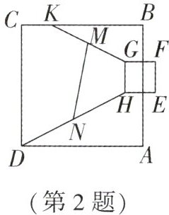 2. 如图,边长为 $1$ 的正方形 $EFGH$ 在边长为 $4$ 的正方形 $ABCD$ 所在平面上移动,始终保持 $EF // AB$,$CK = 1$。线段 $KG$ 的中点为 $M$,$DH$ 的中点为 $N$,则线段 $MN$ 的长为(