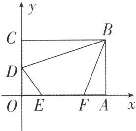 例3 用轴对称解决最短路径问题:在平面直角坐标系中,矩形OABC如图所示. 点A在x轴正半轴上,点C在y轴正半轴上,且OA = 6,OC = 4,D为OC中点,点E,F在线段OA上,点E在点F左侧,EF = 3. 当四边形BDEF的周长最小时,点E的坐标是 ( )