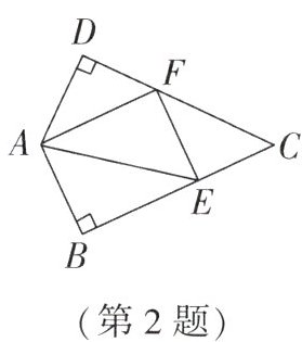 2. 如图,在四边形ABCD中,∠C = 50°,∠B = ∠D = 90°,E,F分别为BC,DC上的点,当△AEF的周长最小时,∠EAF的度数为