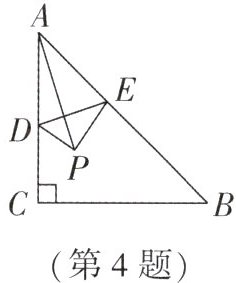 4. 如图,△ABC为等腰直角三角形,∠C = 90°,点P为△ABC内一点,且AP = 4,点D,E分别是边AC,AB上的动点,在运动过程中,△PDE的周长最小是