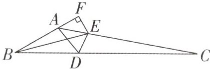 例 2 如图,在 $ \triangle ABC $ 中,点 $ D $ 在 $ BC $ 边上,$ \angle BAD = 100° $,$ \angle ABC $ 的平分线交 $ AC $ 于点 $ E $,过点 $ E $ 作 $ EF \perp AB $,垂足为 $ F $,且 $ \angle AEF = 50° $,连接 $ DE $。
