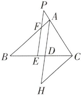 变式 3 如图,在 $\triangle ABC$ 中,$AD$ 平分 $\angle BAC$,$E$ 是 $BC$ 上一点,$BE = CD$,$EF // AD$ 交 $AB$ 于点 $F$,交 $CA$ 的延长线于点 $P$,$CH // AB$ 交 $AD$ 的延长线于点 $H$。
