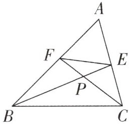 例 3 如图,在 $\triangle ABC$ 中,$\angle A = 60^{\circ}$,$BE$,$CF$ 交于点 $P$,且分别平分 $\angle ABC$,$\angle ACB$。