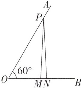 1. (扬州中考)如图,已知 $\angle AOB = 60^{\circ}$,点 $P$ 在边 $OA$ 上,$OP = 12$,点 $M$,$N$ 在边 $OB$ 上,$PM = PN$,若 $MN = 2$,则 $OM = $(