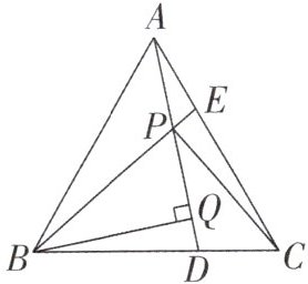 7 如图,在等边 $\triangle ABC$ 中,$AE = CD$,$AD$,$BE$ 交于 $P$ 点,$BQ\perp AD$ 于 $Q$。