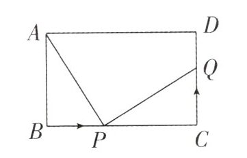 5 (日照中考)如图,在矩形 $ABCD$ 中,$AB = 8\ cm$,$AD = 12\ cm$,点 $P$ 从点 $B$ 出发,以 $2\ cm/s$ 的速度沿 $BC$ 边向点 $C$ 运动,到达点 $C$ 停止。同时,点 $Q$ 从点 $C$ 出发,以 $v\ cm/s$ 的速度沿 $CD$ 边向点 $D$ 运动,到达点 $D$ 停止,规定其中一个动点停止运动时,另一个动点也随之停止运动。当 $v$ 为