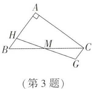 3 (湘西州中考)如图,在 $Rt\triangle ABC$ 中,$\angle A = 90^{\circ}$,$M$ 为 $BC$ 的中点,$H$ 为 $AB$ 上一点,过点 $C$ 作 $CG// AB$,交 $HM$ 的延长线于点 $G$,若 $AC = 8$,$AB = 6$,则四边形 $ACGH$ 周长的最小值是(