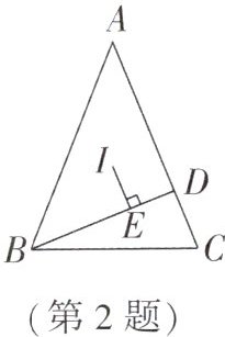 2 如图,在 $\triangle ABC$ 中,$AB = AC$,点 $D$ 在 $AC$ 边上,$\triangle ABD$ 的三条角平分线交于一点 $I$,过 $I$ 作 $IE\perp BD$ 于点 $E$。若 $BD = 10$,$CD = 4$,则 $BE$ 的长为(
