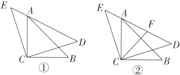 (2)AD²+AE²=AB².证明如下:如图①,连接BD,在△ECA和△DCB中,$\begin{cases}CE = CD\\∠ECA = ∠DCB\\CA = CB\end{cases}$,