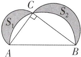 7. (包头自主招生)如图,阴影部分表示以直角三角形各边为直径的三个半圆所组成的两个新月形,已知 $S_{1}+S_{2}= 7$,且 $AC + BC = 8$,则 $AB$ 的长为(