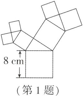 1. 如图,所有的四边形都是正方形,所有的三角形都是直角三角形,其中最大的正方形的边长为 $8$ cm,则图中所有正方形的面积的和是(