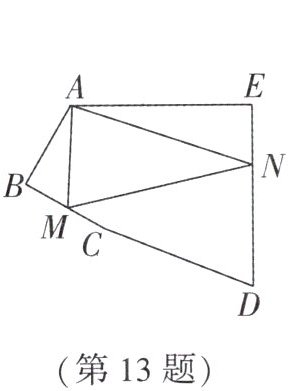 13. (浙江自主招生)如图,五边形$ABCDE$中,$\angle BAE = 120^{\circ}$,$\angle B = \angle E = 90^{\circ}$,$AB = BC = 1$,$AE = DE = 2$,在$BC$,$DE上分别找一点M$,$N$,使$\triangle AMN$的周长最小,则$\triangle AMN$的周长最小值为( )