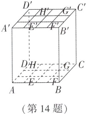 14. (浙江自主招生)如图,$ABCD - A'B'C'D'$为长方体,$AA' = 50cm$,$AB = 40cm$,$AD = 30cm$,把上、下底面都等分成$3×4$个小正方形,其边长均为$10cm$,得到点$E$,$F$,$G$,$H和E'$,$F'$,$G'$,$H'$,假设一只蚂蚁每秒爬行$2cm$,则它从下底面$E点沿表面爬行至上底面G'$点至少要花______秒。