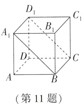 11. (孝感自主招生)如图,在棱长为 1 的正方体$ABCD - A_1B_1C_1D_1$中,一只蚂蚁从点$A$出发,沿正方体表面爬行到面对角线$A_1B上的一点P$,再沿截面$A_1BCD_1爬行到点D_1$,则整个过程中蚂蚁爬行的最短路程为( )