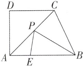 9. 如图,在梯形$ABCD$中,$AB// CD$,$\angle BAD = 90^{\circ}$,$AB = 6$,对角线$AC平分\angle BAD$,点$E在AB$上,且$AE = 2$($AE < AD$),$P是AC$上的动点,则$PE + PB$的最小值是