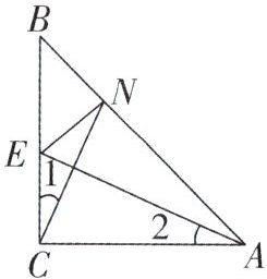 变式1 如图,在$\triangle ABC$中,$\angle CAB = \angle CBA = 45^{\circ}$,点$E为BC$的中点,$CN\perp AE交AB于N$。