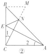 证法③(直接补短法):如图②,延长CN到点M,使得CM=AE.在△CBM和△ACE中,CB=CA,∠1=∠2,CM=AE,