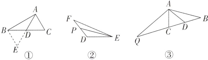 (3) 已知:如图③,$AD是\triangle ABC$的中线,$\angle BAC = \angle ACB$,点$Q在BC$的延长线上,$QC = BC$,求证:$AQ = 2AD$。