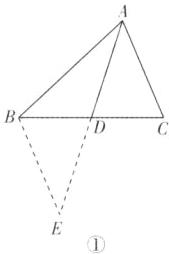 (1) 如图①,$AD是\triangle ABC$的中线,延长$AD至点E$,使$ED = AD$,连接$BE$,写出图中全等的两个三角形:______。