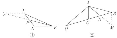 (2) 如图②,$EP是\triangle DEF$的中线,若$EF = 5$,$DE = 3$,设$EP = x$,则$x$的取值范围是______。