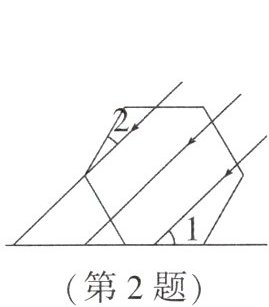 2. (枣庄中考)如图,一束太阳光线平行照射在放置于地面的正六边形上,若 $\angle1 = 44^{\circ}$,则 $\angle2$ 的度数为(