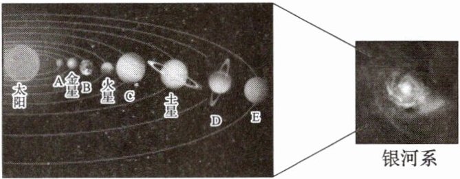 (2)太阳系的八颗行星:A____、金星、B____、火星、C____、土星、D____、E____。