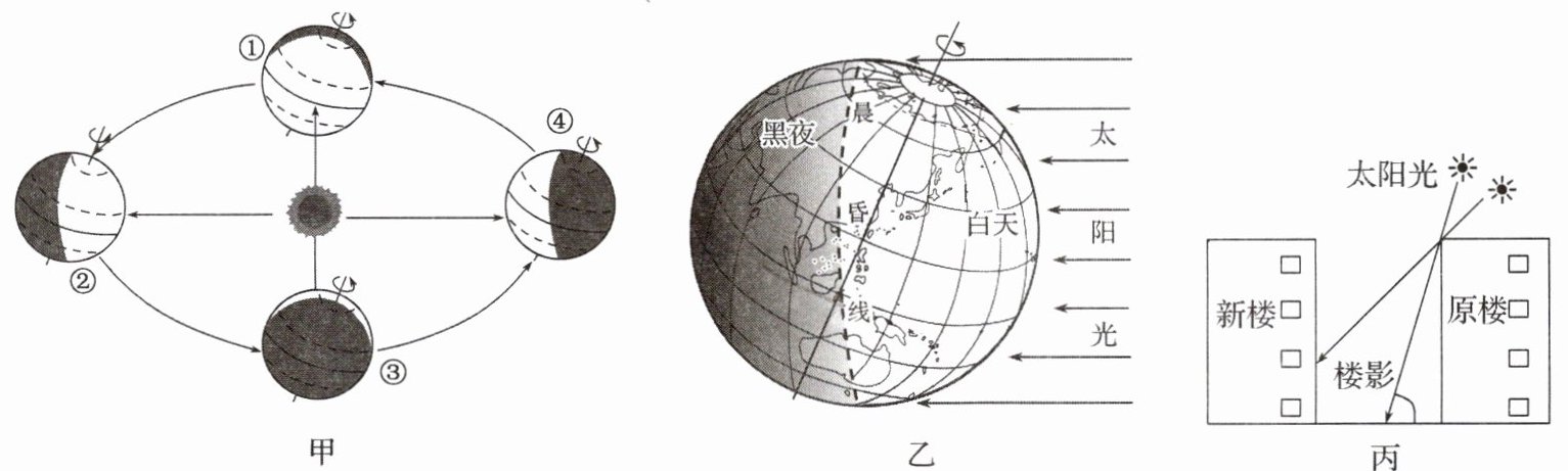 (3)读图丙,为了取得更好的采光效果,北方地区在设计居民楼南北间距时,应充分考虑______(选填“冬”或“夏”)季的光照情况,以免前排楼房遮挡后排楼房的阳光。