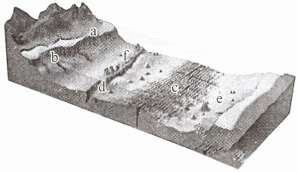2. ____(b):大陆架向外倾斜的陡坡,水深急剧增至数千米。
