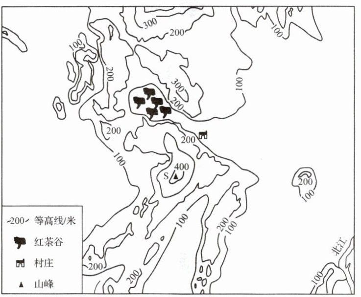 2023年4月7日下午,习近平同法国总统在广州松园进行非正式会晤。英德红茶作为国茶(广东茶)代表之一,用于会面现场接待外宾。读英德积庆里红茶谷等高线地形图,完成5~7题。