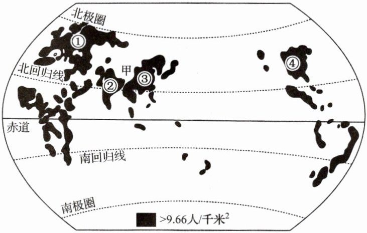 5.图中甲地没有形成人口大陆,主要原因是该地位于 ( )