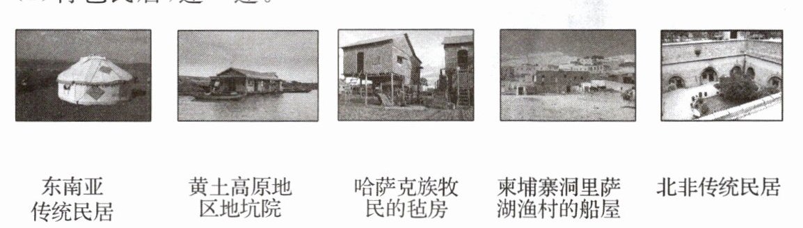 (1) 东南亚传统民居 黄土高原地区地坑院 哈萨克族牧民的毡房 柬埔寨洞里萨湖渔村的船屋 北非传统民居