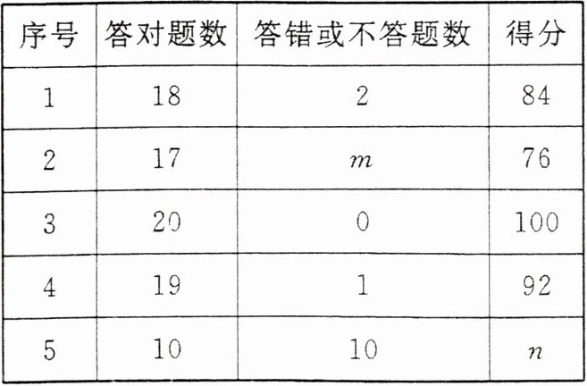 (1)据表易知,答对一题得5分,答错一题扣1分.