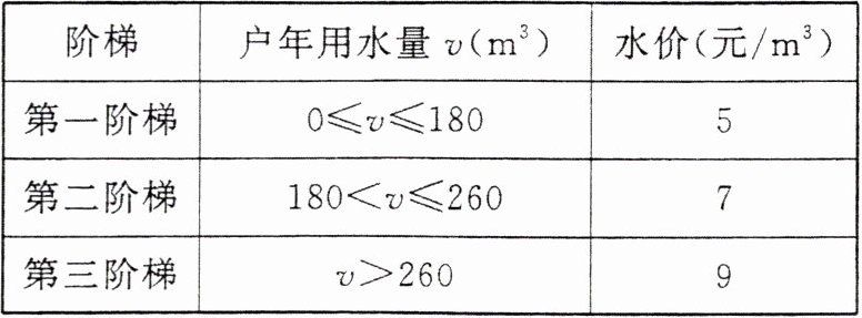 6. 为了倡导市民节约用水,某市出台了城镇居民用水阶梯水价制度(如下表).每年水费的计算方法为:年交水费$=第一阶梯水价×第一阶梯用水量+第二阶梯水价×第二阶梯用水量+第三阶梯水价×$第三阶梯用水量.该市某同学家在实施阶梯水价制度后的第一年缴纳水费$1730$元,则该同学家这一年的用水量为