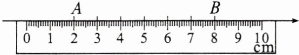 7. 如图,将一刻度尺放在数轴上(数轴的单位长度是 1cm). 若数轴上点$A$和点$B$刚好对着刻度尺上的刻度 2 和刻度 8,且这两点到原点的距离相等,则数轴上原点对着直尺上的刻度是