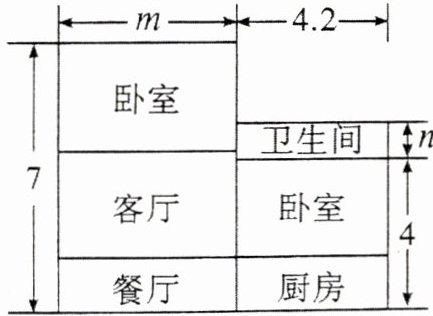 1. 小聪家的住房户型结构如图所示,根据图中的数据(单位:$m$),求出小聪家的住房面积(用含 $m$,$n$ 的代数式表示).