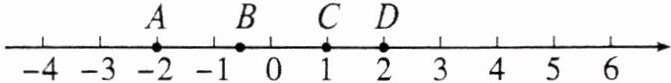 5. 如图,数轴上有A,B,C,D四个点,其中表示2的相反数的点是(