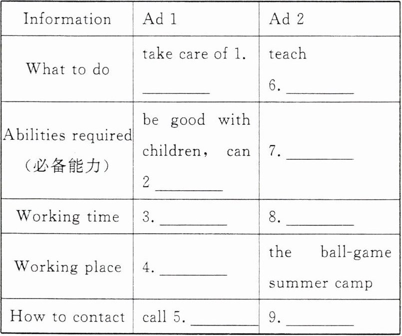.||Abilities required(必备能力)|be good with children,can