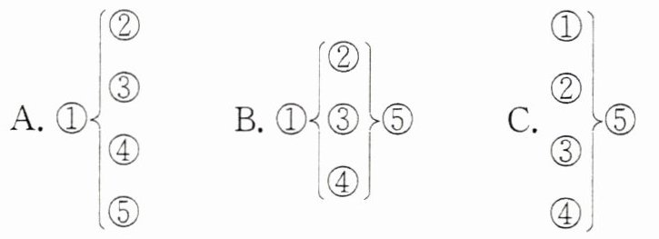 A. ①$\begin{cases}②\\③\\④\\⑤\end{cases} $ B. ①$\begin{cases}②\\③\\④\end{cases} $⑤ C. $\begin{cases}①\\②\\③\\④\end{cases} $⑤