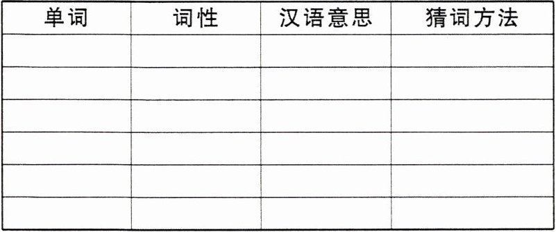 阅读文章,找出你不认识的单词填写在下面的表格中,你可能用到以下的方法进行猜测生词。