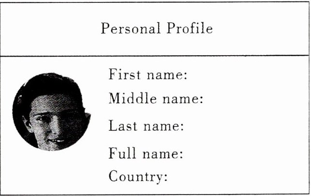 (1)任务一:First name:Alan;Middle name:Luke;Last name:Wood