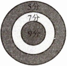四、如下图,若投中外圈得5分,投中内圈得7分,投中靶心得9分,脱靶得0分。小淘一共得了34分,他投中了1次内圈,其余全投中靶心。他投中了几次靶心?