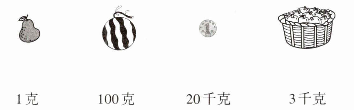 在日常生活中,哪些物品的质量可以用“千克”作单位?写出3个你知道的物品名称。