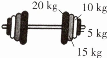 五、下图是一位举重选手平时练习时使用的杠铃,这个杠铃一共重多少千克?(杠铃杆重20千克)