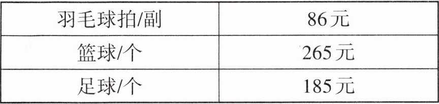 四、老师要购买一些体育用品。他买了 2 副羽毛球拍和 3 个相同的球,付给售货员 1000 元,找回一些零钱。他买的是篮球还是足球?