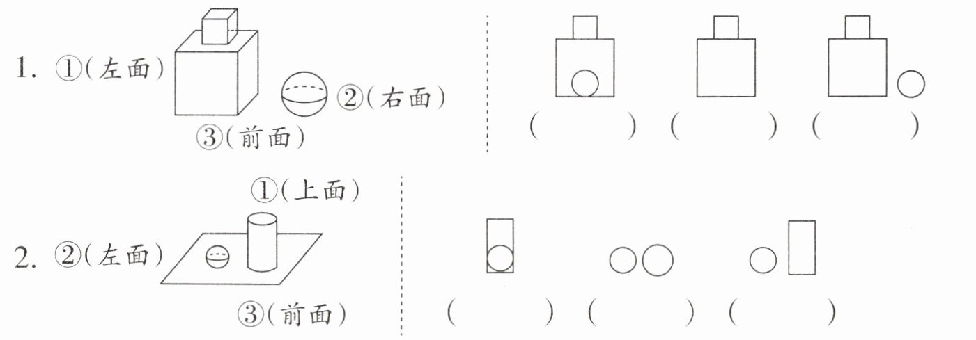 二、右边的三幅图分别是在哪个位置看到的?把相应的序号填在括号里。