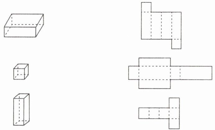 三、把下面的长方体、正方体和相应的展开图连一连。