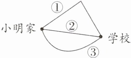 第②条路最近。在小明家与学校这两个点之间,第②条路是线段,而第①条是折线,第③条路是曲线。两点间所有连线中线段最短,所以第②条路最近。