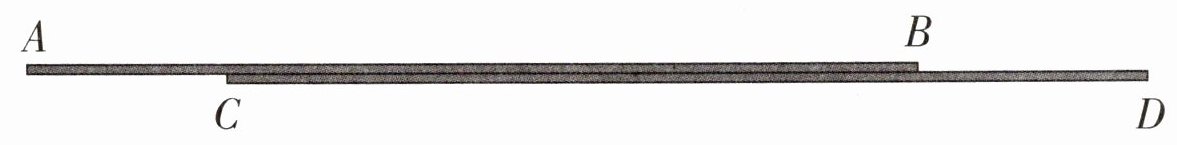 五、线段$AB$和$CD$重叠在一起,你能用圆规来比较它们的长度吗?你想出几种比较的方法?说一说。